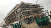 Céghomlokzat javítása és festése 322 m²-en