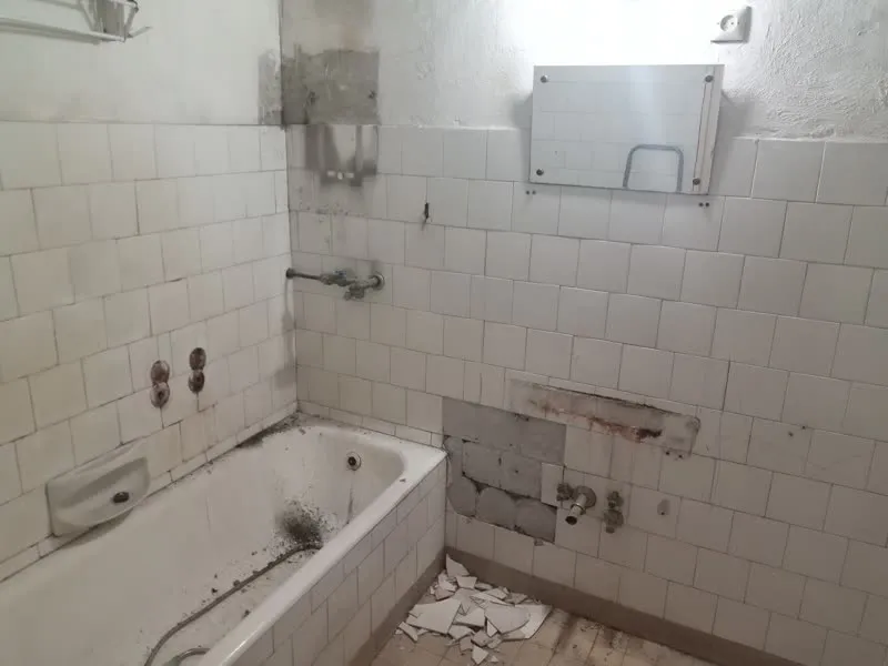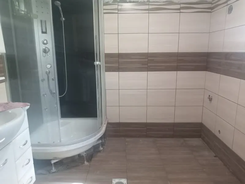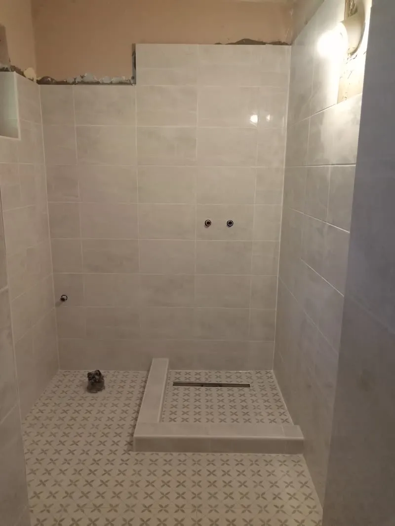 Zuhanyzó teljes felújítása, épített zuhanyzó kialakítása, meglévő burkolat bontása, lefolyó behelyezése