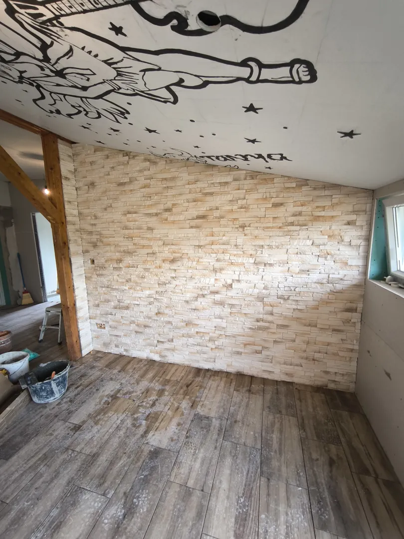 180 m² hidegburkolás több helyiségben
