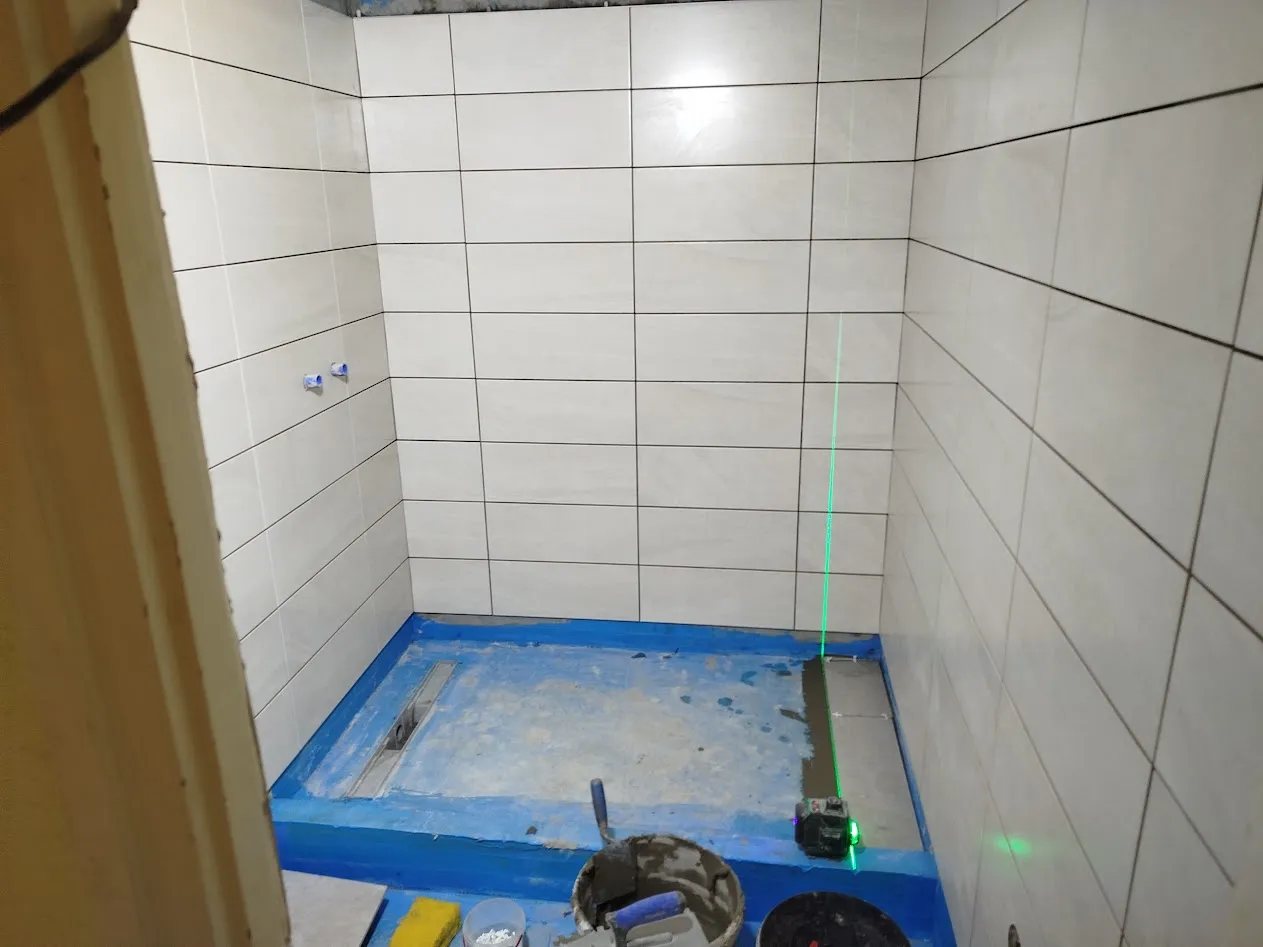 10 m² fürdőszoba hidegburkolása padlólappal és csempével.
