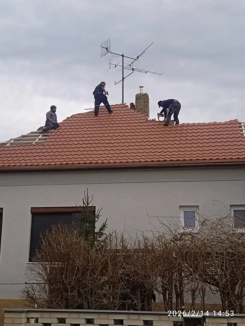 Meglevő palatető bontása nélkül, arra kell rátenni a cserepes lemezt. 3 db tetőtéri ablakot is cserélni kell, a kéményt a tető fölött újraépíteni. Ereszcsatornát is cserélni, kb. 36 m.