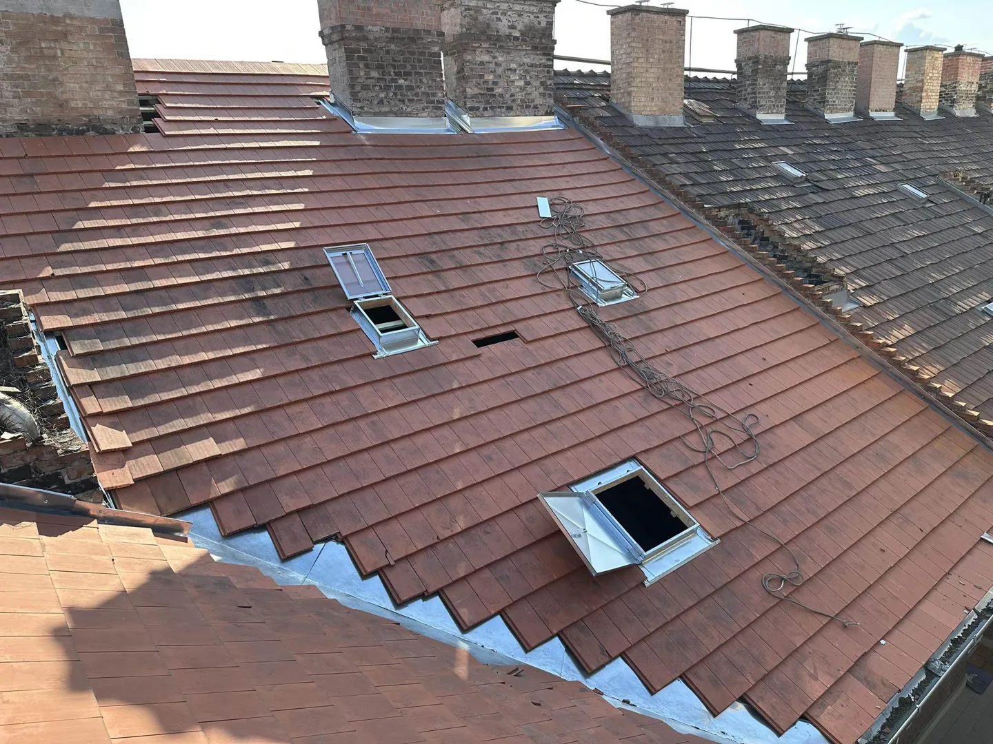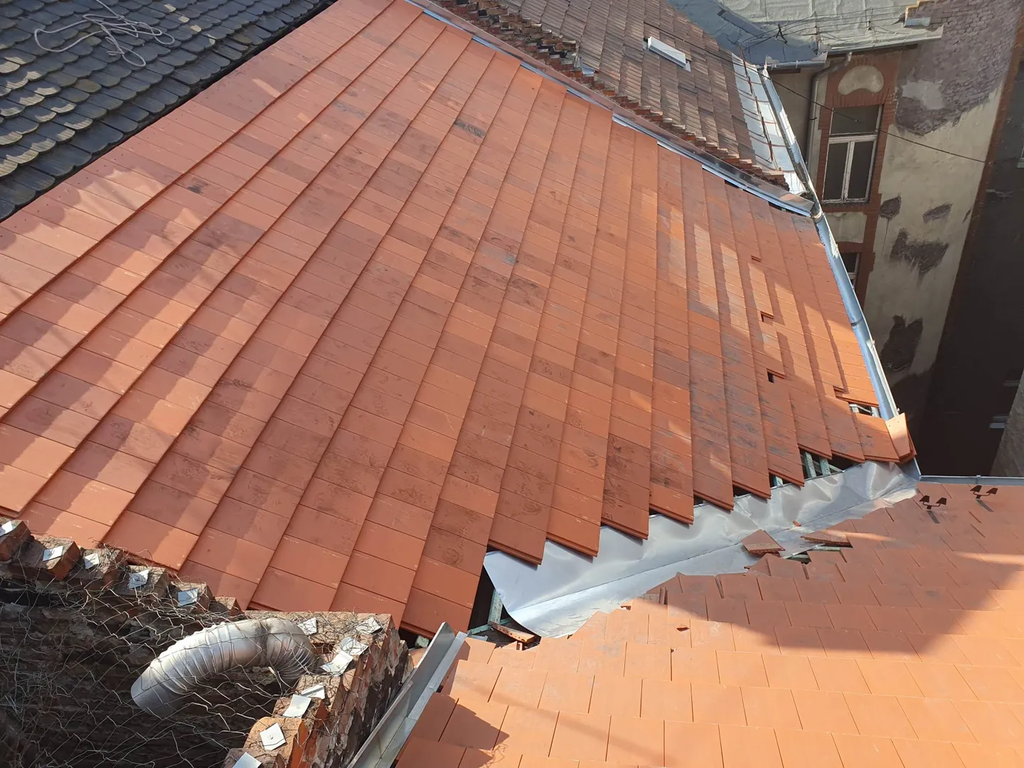 m2 tető alapterület, vályogfalazatú házon, cserépléc csere, a meglévő Mátraderecskei cserép visszarakása. 2 tetősík alá bontott kémény visszaépítése, teljes bádogozás és teljes csatorna csere. Felmérési rajzot, fotókat csatoltam