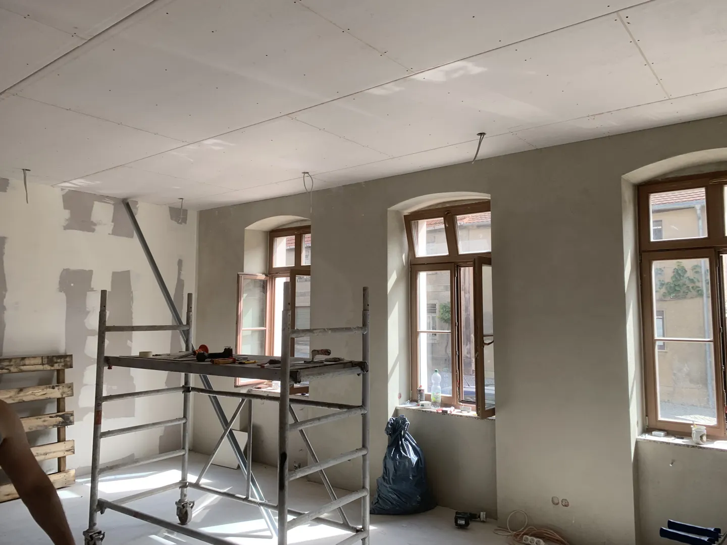 Régi fa ablakokat cseréltettük új, műanyag nyílászárókra, tokba építéssel. A leflexelt zsanérok helyét javítani kellene illetve fehérre festeni a teljes ablakkeretet belül és kültéri részen is. Nagyrészt x cm-es ablakokról van szó, de van egy keskenyebb is. Családi ház, nincsenek szintek csak nagy ( 3,5 m ) belmagasság.