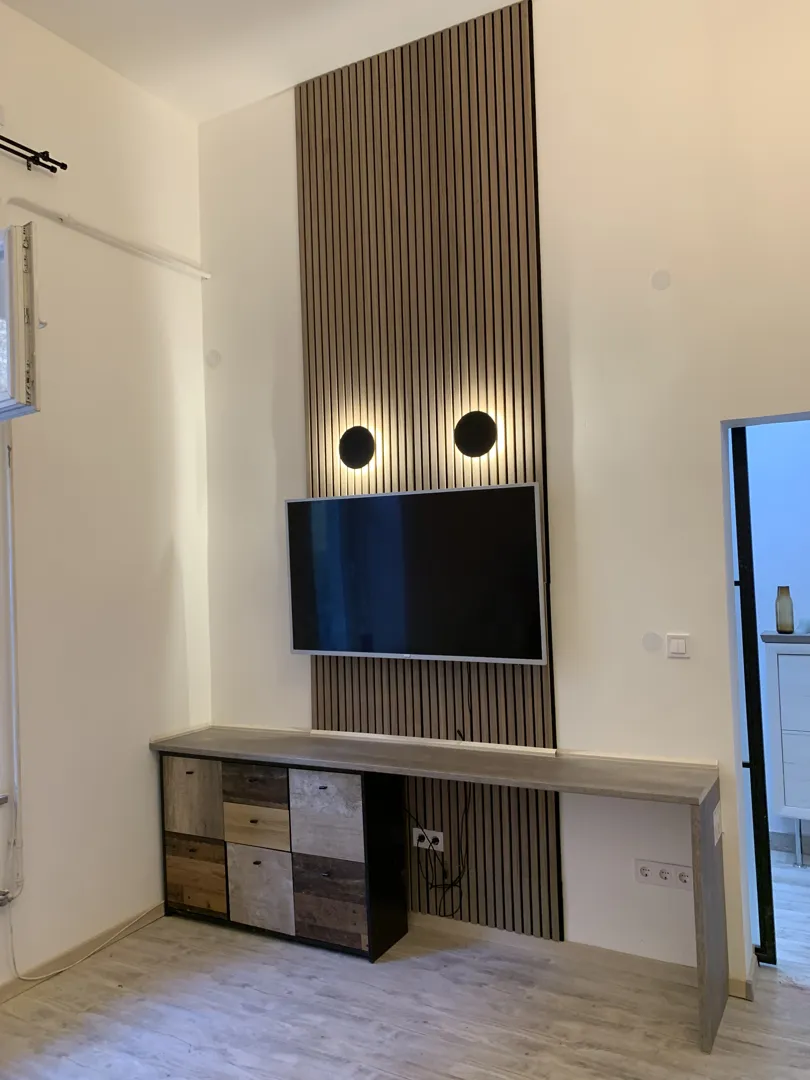 Panel fürdőszoba teljes felújítása. A falak betonig le lesz kaparva, amennyire tudom kiegyenlítem a felületet. Néhol vízálló gipszkarton felületre kell burkolni. A falakon összesen 3 vizes kiállás található. Egy épített zuhanyzót is szeretnék kialakítani. A helyét és a lefolyóbeépítést intézem, viszont a lejtést és annak burkolását a szakembernek kell elvégeznie.