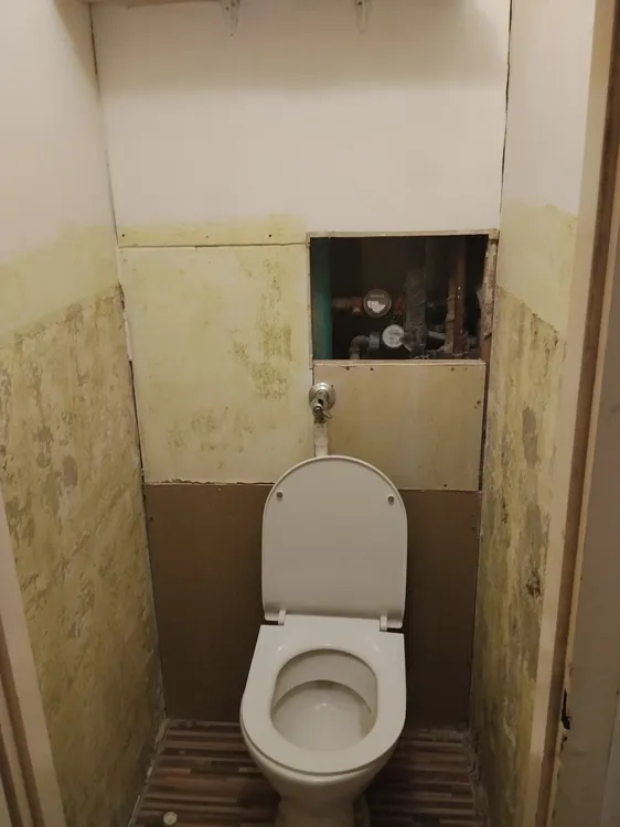 5 szobafal 60 cm magasan felázott.. A felázott részt le kell verni, vakolni glettelés előtt.