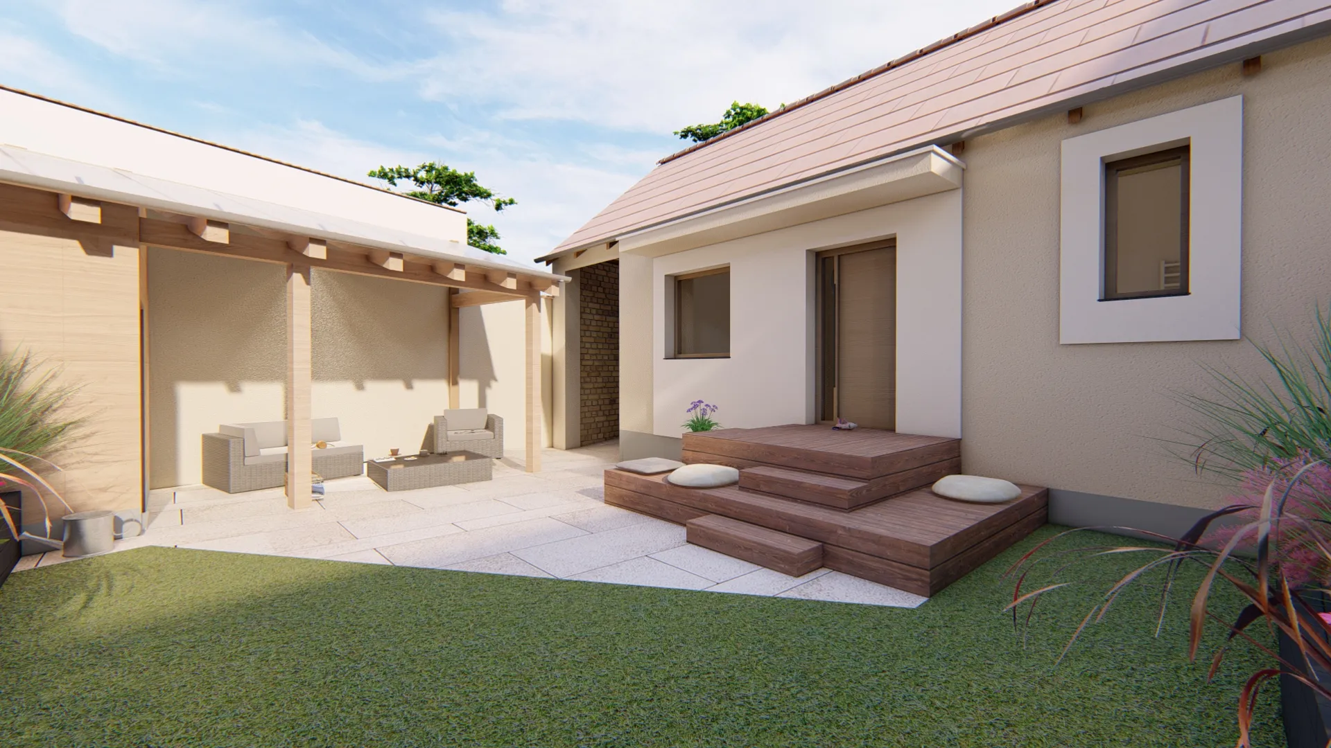 Könnyűszerkezetes ház, 3 szoba, amerikai konyha nappali