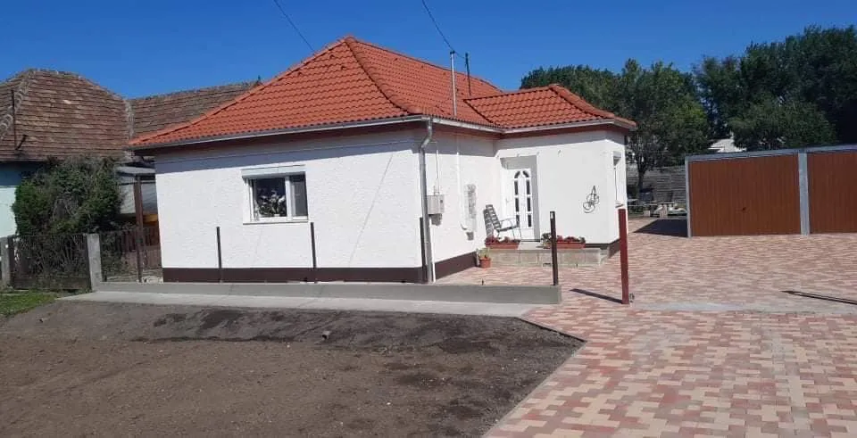 Ház oldalfala teljesen sík két kisméretű ablak van rajta /fürdőszobai/vakolt