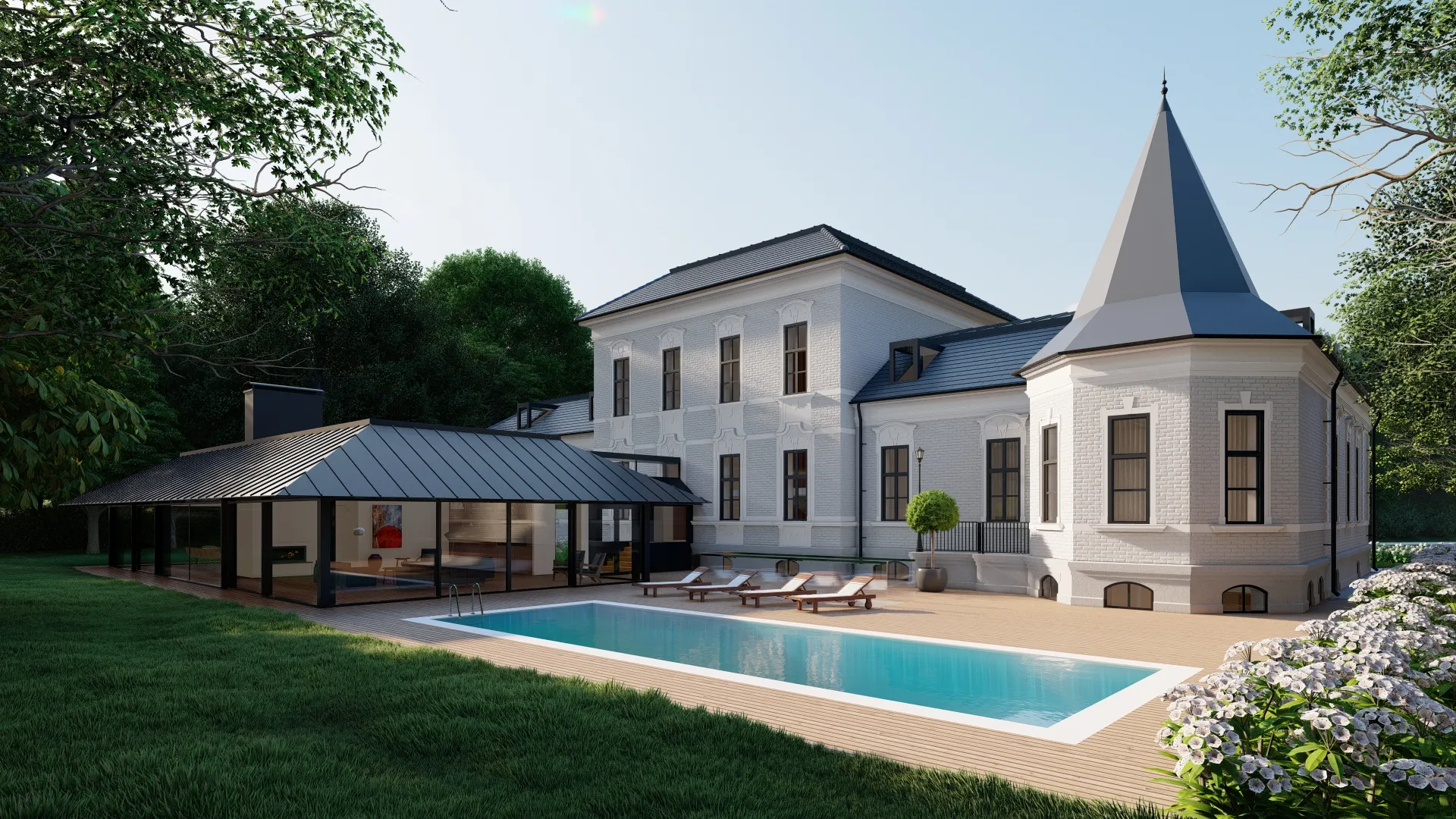 889 m²-es hozzáépítés tervezése fürdőszobával.