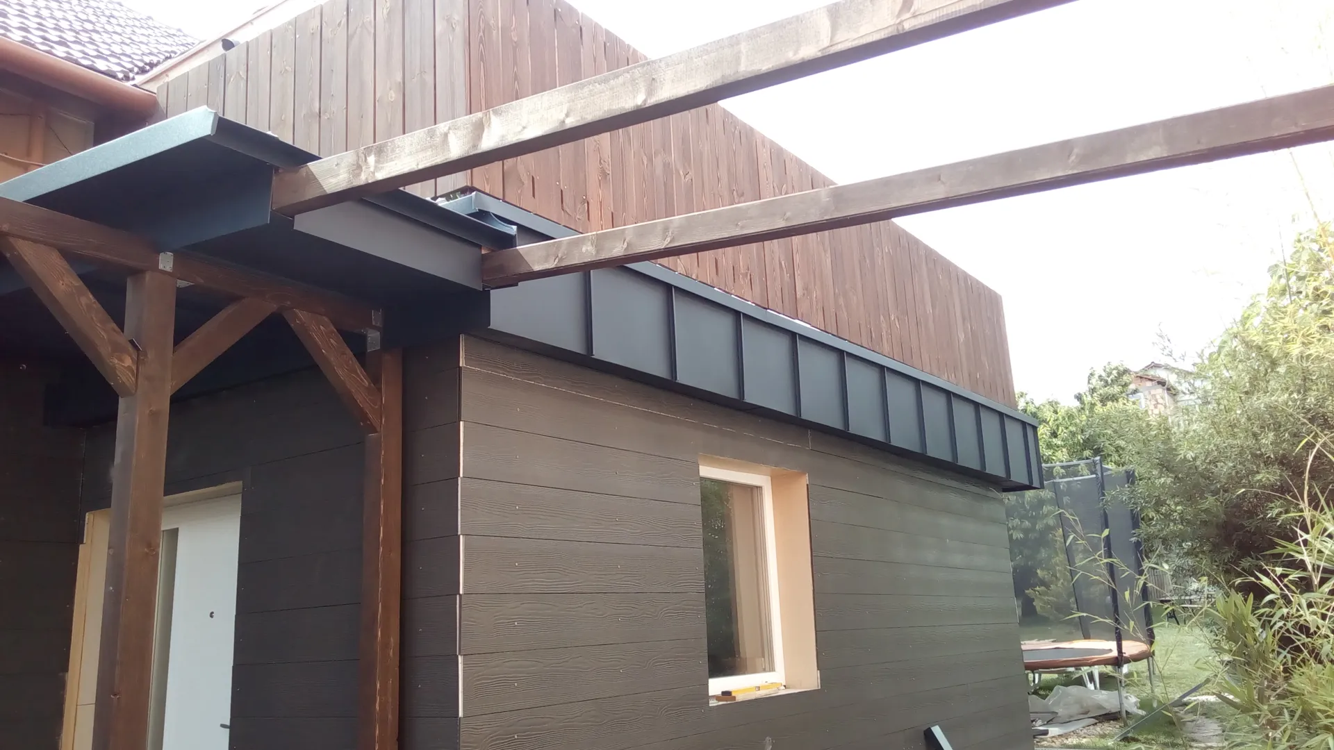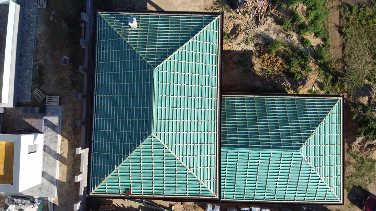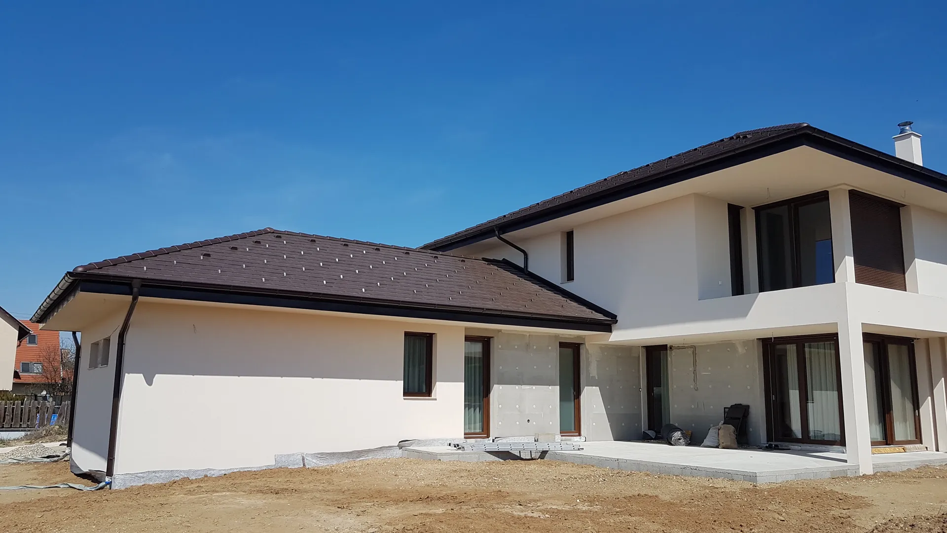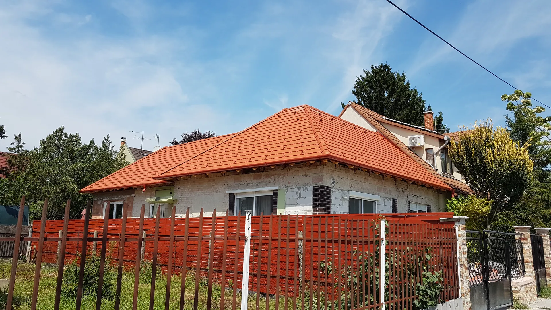 A tető fele 95%-ban kész. Azt kellene befelyezni.Tovabba tető másik felének neki állni