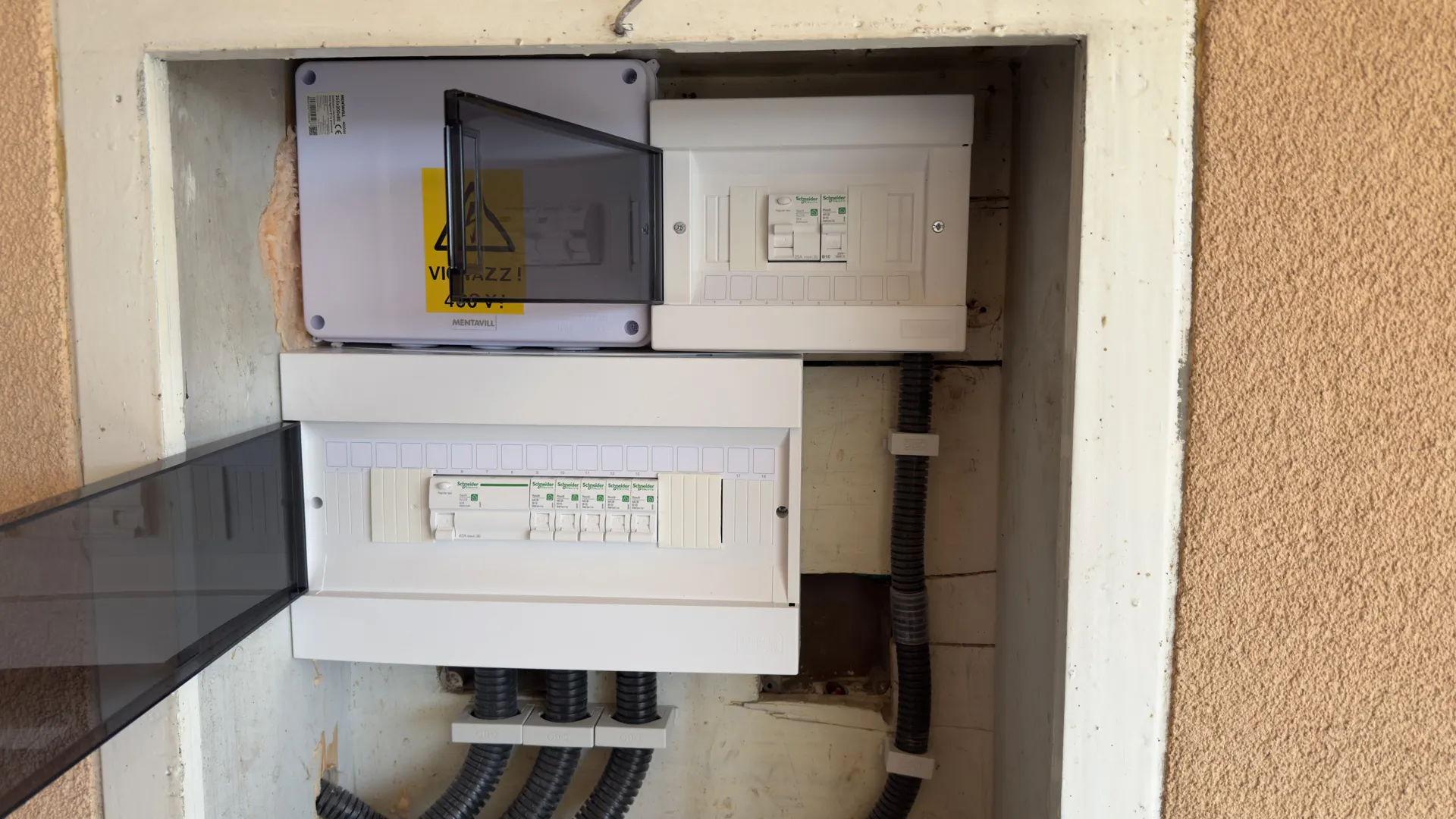 Társasházközösségnek 2 lépcsőházban új villamos hálózat kiépítése, régi épületben.