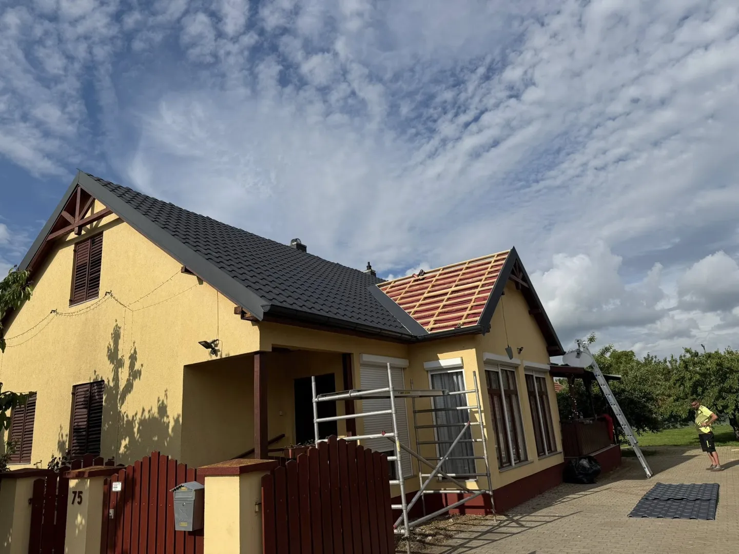 Leszedni a cserepet, fóliázás, lécezés, cserepes lemez fedés