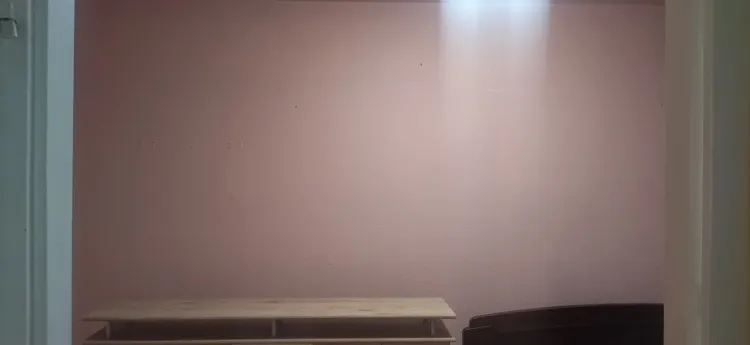 Sok helyen omlik, üreges, porlik a fal, repedések vannak, leváló falfesték. A fal megerősítésétől kezdve a festésig lenne szükség a munkára. A plafon fehér lenne, díszléc vàlasztanà el a színes résztől.