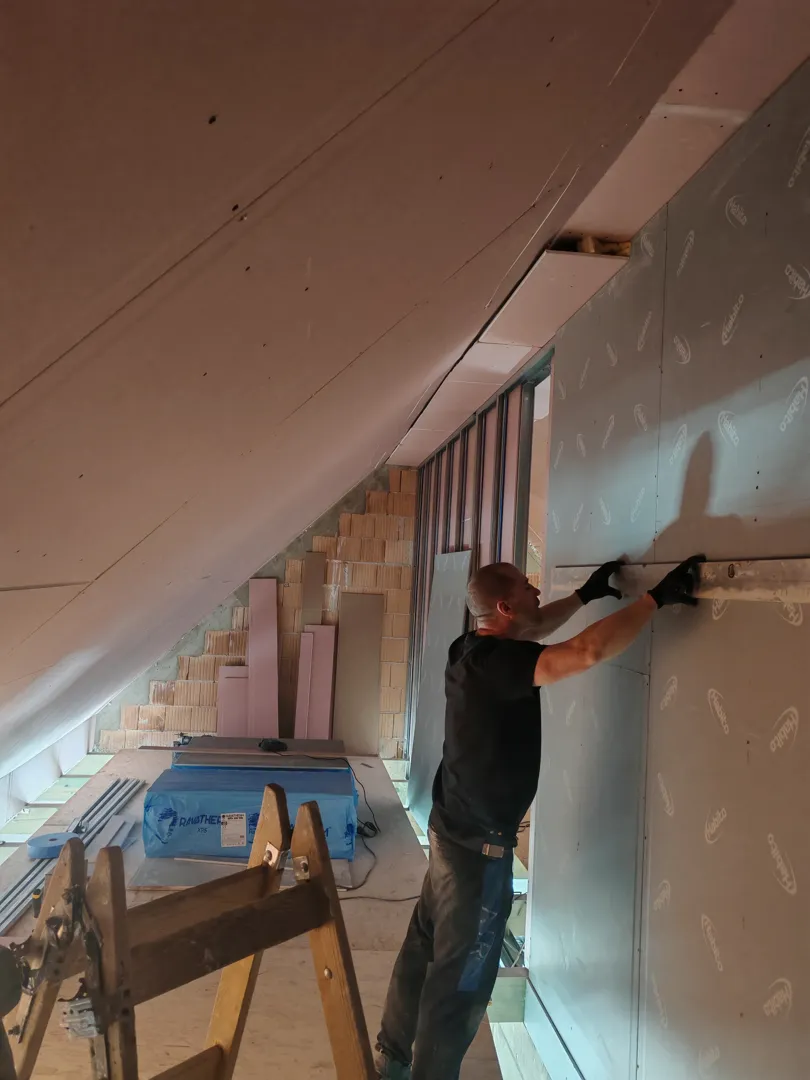 Gipszkarton válaszfal építése 40,3 m²-en.