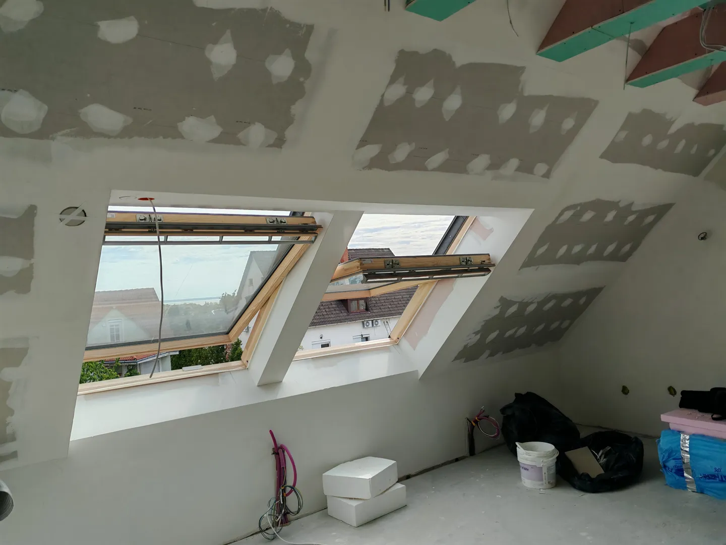 6 m²-es válaszfal építése gletteléssel, festéssel és ajtóval.
