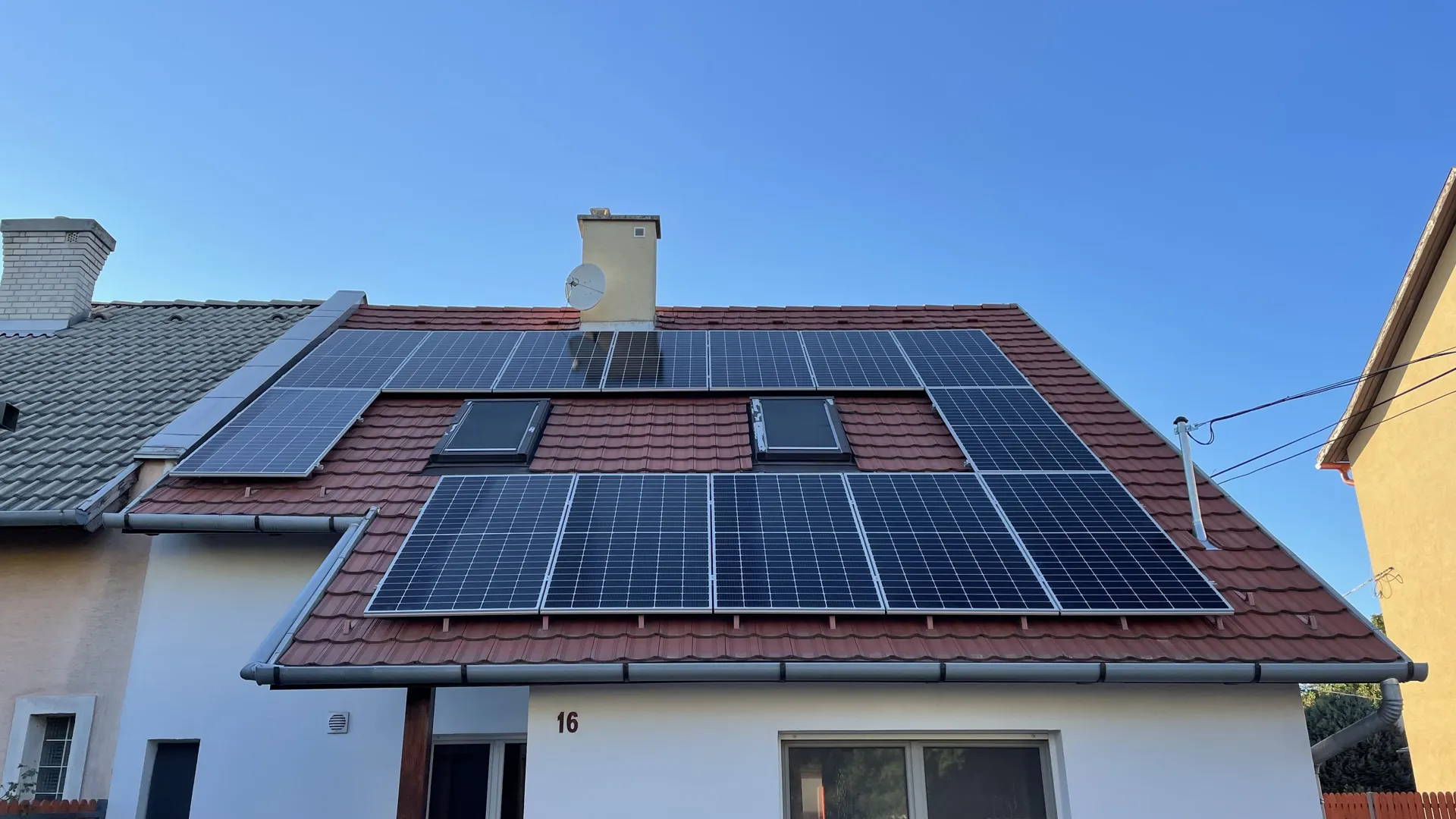 25 / ho általány. Világítás, tv, mikro, k. pirító, a legnagyobb fogyasztó. Gázzal főzünk és fütünk, nincs nagy fogyasztó, de szertnénk elektromos autót tölteni, valamint klíma beszerzése is tervbe van a későbbiekben. A tető majdnem fél felé néz, egy kicsit dél- dél nyugati. Szöge 30-50 fok közé esik ránézésre. Árnyékolás csak a reggeli korai órákban, a szomszéd iker ház tető miatt egy szűk sávban van. Van egy fedett auto beálló is ami szóba kellett a tetőn kívül. A ház a 80-as években épült, bramac cserepekkel fedett. Területe 36m2 körül lehet. Egyik oldalon.
