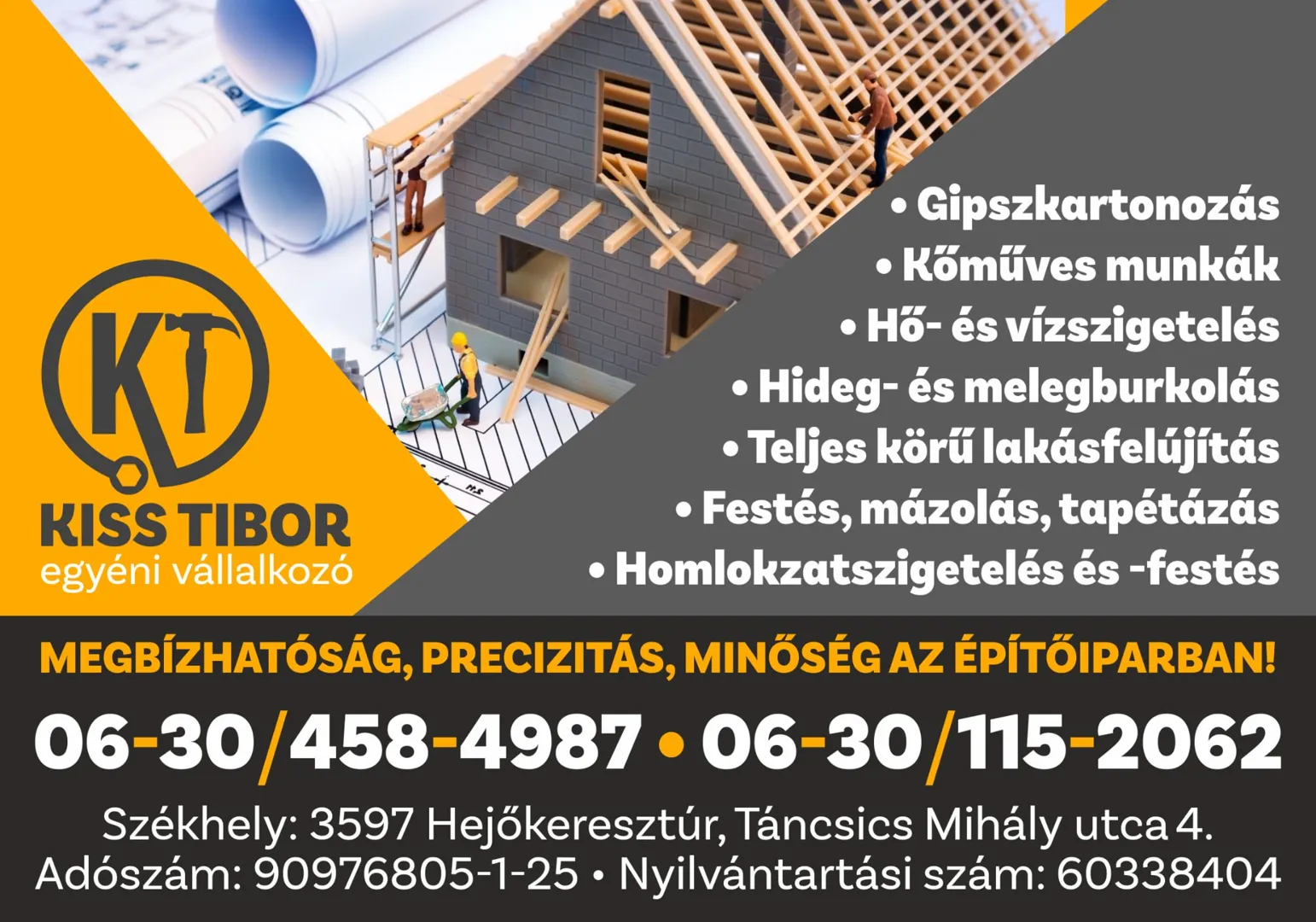 Kérj árajánlatotPontosság, rugalmasság, szakmai tapasztalat és rutin, korrekt ár, lelkiismeretes munka. Jó szívvel tudom ajánlani. Örülök, hogy Őt választottam.